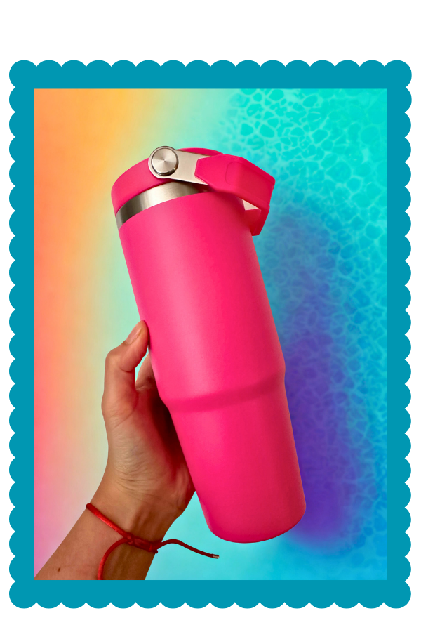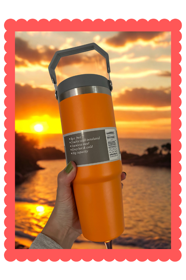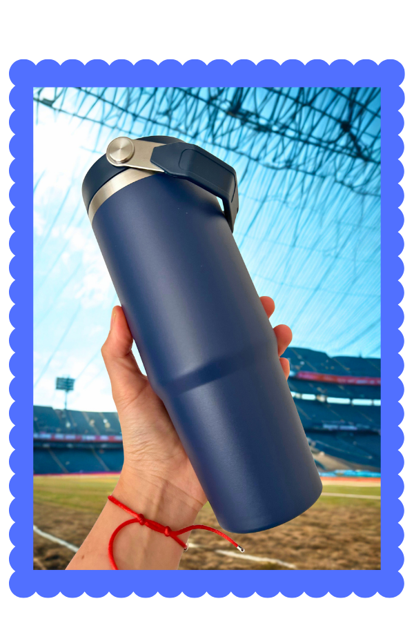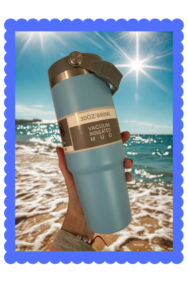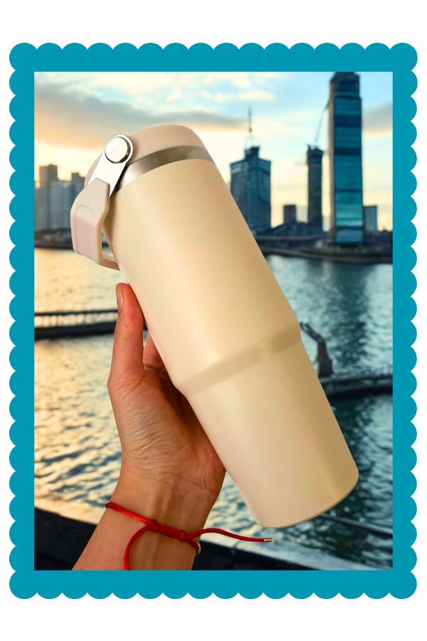 Vaso térmico 890 ml con manija y pico antivuelco. Doble capa de acero